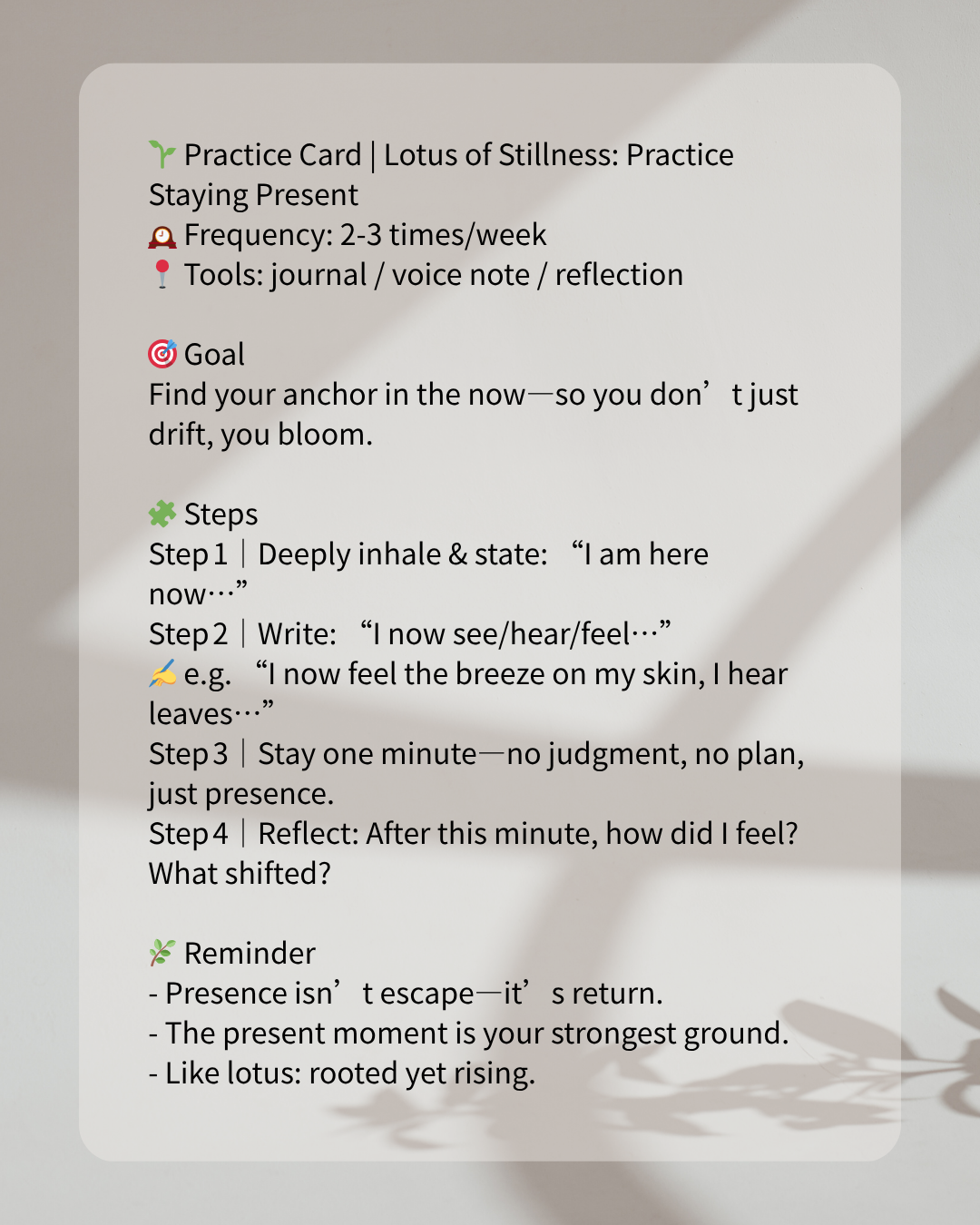 When life bombards you with tasks, noise or chaos, the “Lotus of Stillness” invites you to return to “I am here”. You don’t need everything perfect—just your presence.
