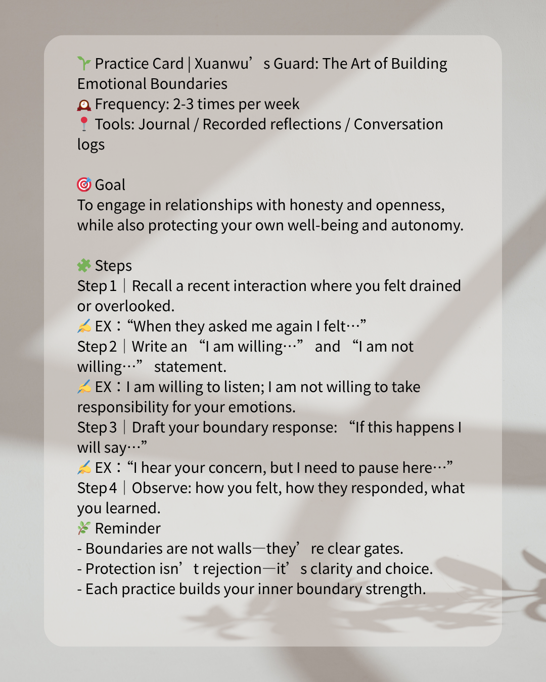 “I awaken Xuanwu’s guard within me—setting emotional boundaries that allow genuine connection and peaceful protection.”